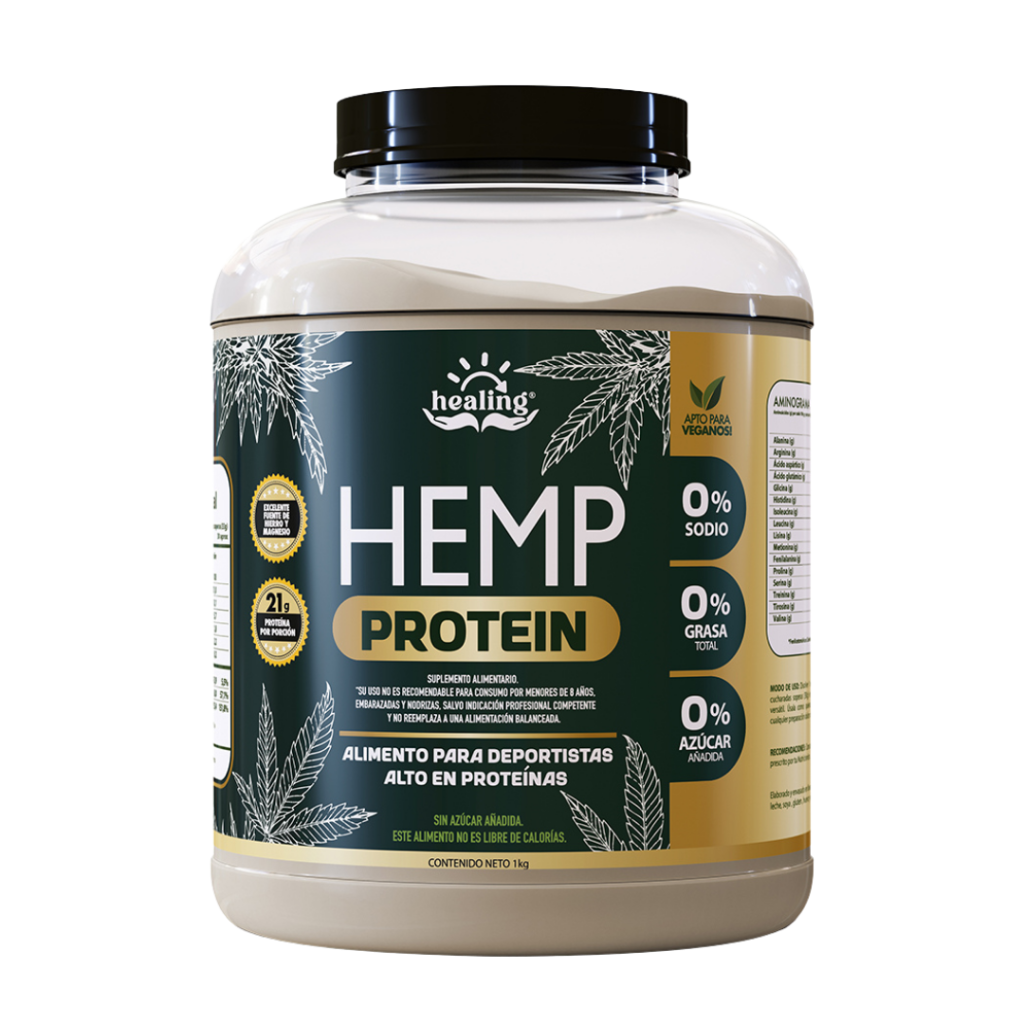 Healing Hemp Protein: Nutrición limpia y poderosa. Consigue 21g de proteína vegetal por servicio con un perfil nutricional impecable: sin azúcar, sin grasa y sin sodio. Fortalecida naturalmente con hierro y magnesio para combatir la fatiga y potenciar tu musculatura. ¡100% vegana y deliciosa en cualquier receta!